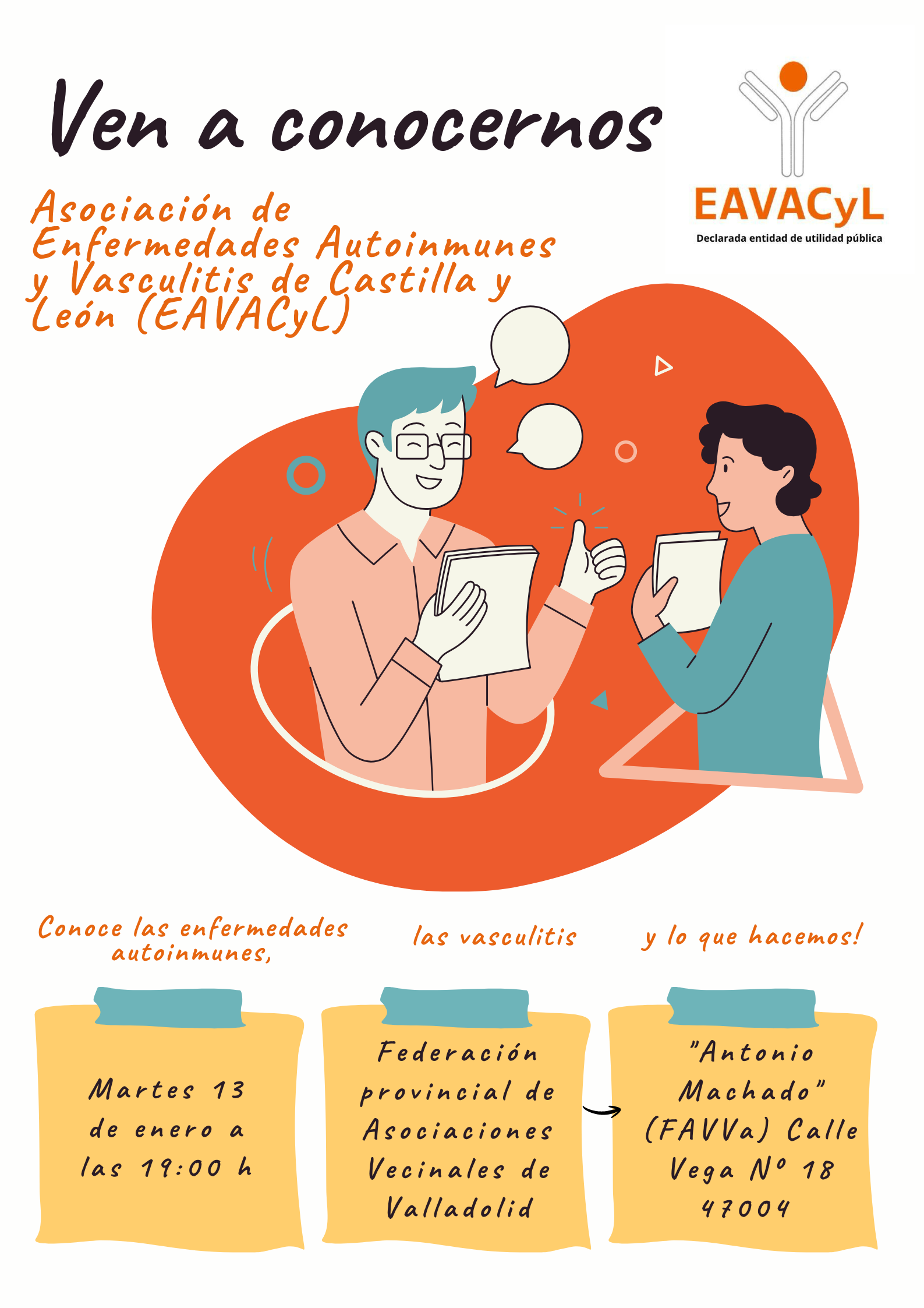 El martes 13 de enero a las 19 horas en la sede de la federación hablaremos sobre las enfermedades autoinmunes. estarán con nosotros miembros de la Asociación